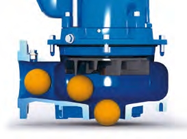 Основной причиной мягких блокировок является изношенность ткани еще до того, как она попадает в рабочее колесо. В системе Contrablock используется регулируемая подпорная плита со спиральным желобом, идущим от центра до наружного края плиты. Любая материя, попавшая под рабочее колесо, будет, таким образом, вытолкнута обратно в основной поток жидкости и через рабочее колесо, сильно уменьшая риск мягкой блокировки. Для поддержания эффективного прохождения материи и восстановления сниженного из-за износа КПД, подпорную плиту можно легко отрегулировать снаружи насоса без необходимости обращения в сервисный центр.